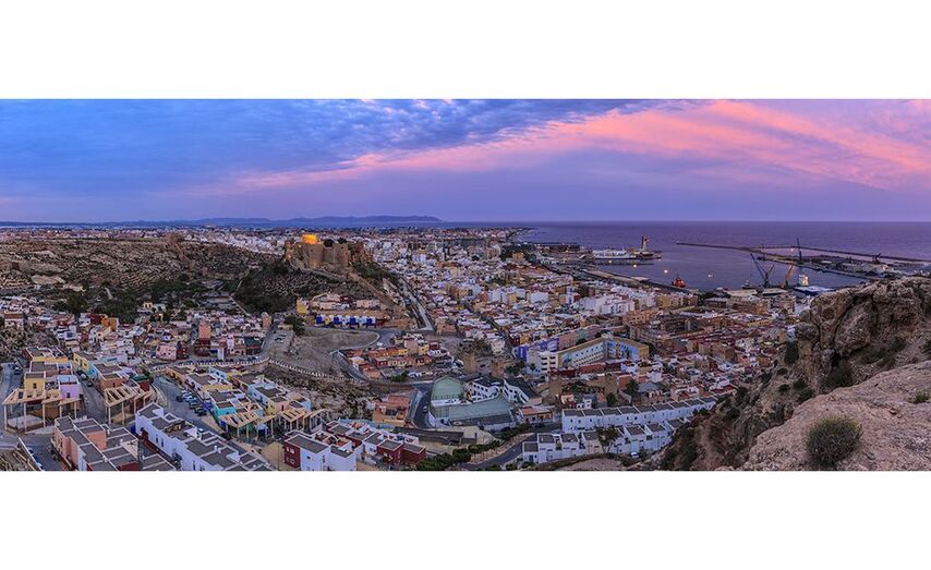 Ver la ciudad desde la mayor fortaleza árabe de Europa. La Alcazaba se divisa desde cualquier punto de la ciudad y lógicamente desde ahí arriba se domina la capital, el puerto y sus alrededores. Su construcción fue iniciada en el año 955 por Abderramán III y terminada por Hayrán, rey taifa de Almería, en el siglo XI. Tras la conquista cristiana fue reformada por los Reyes Católicos y Carlos I. Fue residencia real y hoy permanece en pie el palacio de Al-Mutasin con todas sus estancias, su mezquita, convertida en iglesia desde finales del siglo XV, y sus baños. Tiene una sola puerta de acceso, casi invisible por las enormes murallas, y amplias estancias de techos abovedados y puertas góticas. Y, como en casi todas las localidades de origen defensivo, el resto del humilde caserío se extiende bajo la Alcazaba; en este caso, hasta el Mediterráneo. Excavadas en las faldas del cerro de San Cristóbal, se encuentran las viviendas trogloditas que conforman el popular y pintoresco barrio de La Chanca. Existe una propuesta para que el barrio sea reconocido comoPatrimonio Cultural e Inmaterial de la Humanidad.
