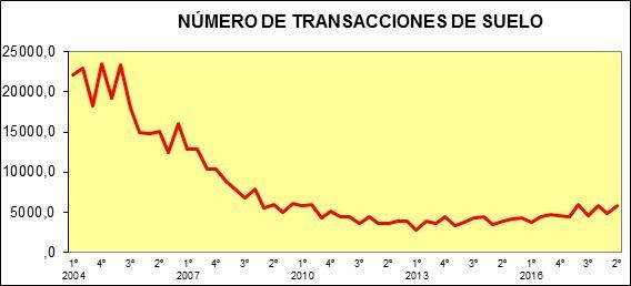 El valor del suelo transmitido fue de 1.023,0 millones de euros, un 4,7% menos respecto al segundo trimestre de 2017