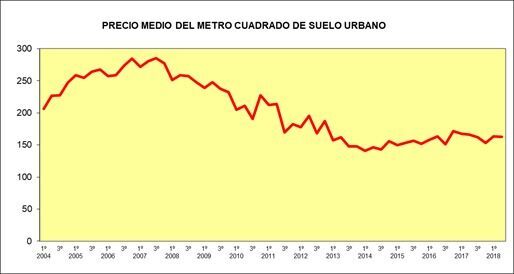 El precio medio del metro cuadrado del suelo descendió en el segundo trimestre de 2018 un 2,1% en tasa