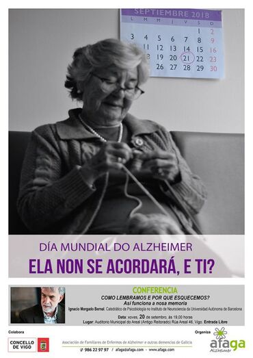 ‘Ela non se acordará. E ti?’ é o lema escollido polas asociacións de familiares de enfermos de alzhéimer de Galicia para conmemorar o Día Mundial, que se celebra este venres, 21 de setembro.