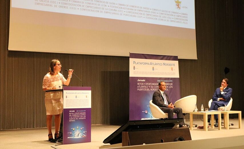 A conselleira aproveitou a presenza na xornada do secretario General de Infraestruturas para pedir a colaboración activa do Goberno de España para que siga insistindo e facéndose eco da xusta petición das tres comunidades autónomas ante os órganos competentes da Unión Europea da inclusión do noroeste peninsular no Corredor Atlántico de Mercadorías.