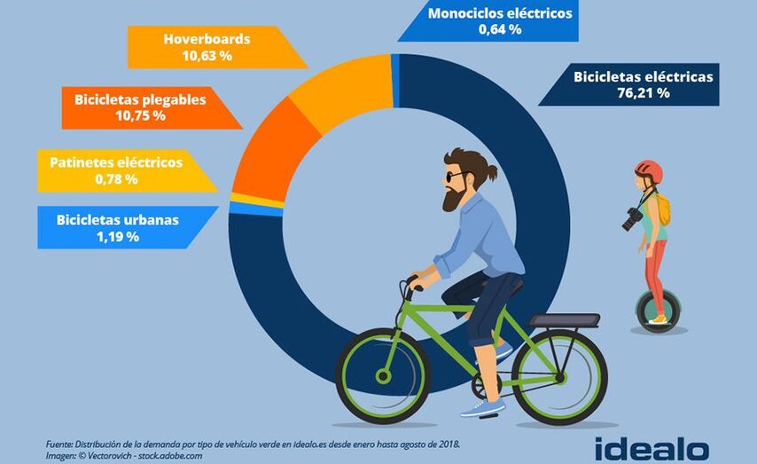 Las bicicletas eléctricas son el vehículo limpio más demandado en 2018 (76,21 %), seguidas de los hoverboards (10,63 %) y las bicicletas plegables (10,57 %)