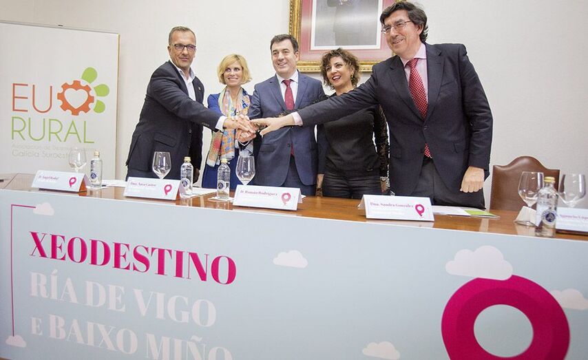 O Xeodestino da Ría de Vigo e Baixo Miño dá os seus primeiros pasos. A Asociación de Desenvolvemento Galicia Suroeste Eurural, os 13 concellos do territorio do GDR 14 (Baiona, Fornelos de Montes, Gondomar, A Guarda, Mos, Nigrán, Oia, Pazos de Borbén, O Porriño, Redondela, O Rosal, Tomiño e Tui) e o concello de Soutomaior asinaron este mércores 17 de outubro un convenio de colaboración para a posta en marcha, xestión e e dinamización desde xeodestino turístico, o primeiro de toda Galicia en ser xestionado por un Grupo de Desenvolvemento Rural (GDR). Con esta iniciativa búscase aglutinar esforzos e xerar un maior fluxo turístico nos 14 municipios que abrangue o xeodestino e dar resposta a unha actividade económica complexa de carácter transversal cun mercado tremendamente esixente, dinámico e influenciable.