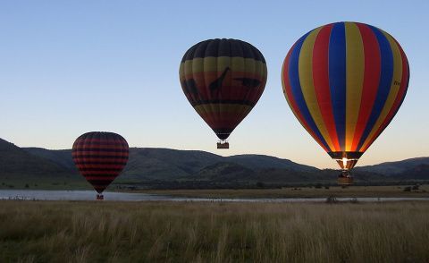 Aquellos que quieran disfrutar de un momento de paz en el aire tienen la opción de recorrer los cielos de Sudáfrica en globo aerostático. Existen numerosas propuestas que permiten disfrutar de variedad de paisajes por todo el país. Por ejemplo, en Free State es posible sobrevolar el cráter de Vredfort, Patrimonio de la Humanidad por la UNESCO. Es el impacto más grande de un meteorito en la Tierra y tiene 300 km de diámetro. Data de hace aproximadamente 2.000 millones de años y es el segundo cráter conocido más antiguo del planeta. En la misma región, la ciudad de Clarens, flanqueada por las montañas Maluti, ofrece unas vistas espectaculares. La ciudad es apodada la "Joya del Estado Libre del Este", y debe su nombre a la ciudad suiza donde Paul Kruger pasó sus últimos días. En la región del Cabo Norte, el desierto del Kalahari es una experiencia única con paisajes de vivos colores gracias al contraste entre las dunas de arena roja y el cielo azul.