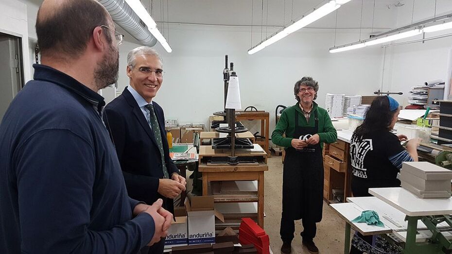 O conselleiro de Economía, Emprego e Industria, Francisco Conde, salientou a unión da tradición e as novas tendencias que se xuntan no traballo do obradoiro artesán Pino Encuadernaciones. A empresa, que desenvolve a súa actividade en Vigo, é unha das participantes no novo programa para a incorporación de aprendices aos obradoiros artesanais galegos impulsado pola Consellería de Economía, Emprego e Industria.
