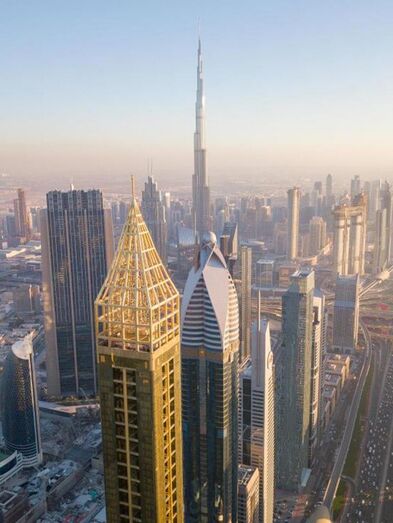 El Gevora Hotel en Dubai, ocupa el puesto número uno en cuanto a hoteles más altos del mundo, tiene 75 pisos y mide 356 metros, sólo uno más que el JW Marriott Marquis Hotel que también se encuentra en Dubai. El Gevora Hotel, tiene 528 habitaciones, la mayoría de lujo, pero todas acordes al tamaño del hotel, la más pequeña tiene 46 m2 y la más grande 85 m2, además, cada planta cuenta con un mayordomo dispuesto a satisfacer todas las necesidades de los huéspedes. Sus cinco restaurantes ofrecen una gran variedad de ambientes y cocinas. Este impresionante hotel de color dorado también tiene spa, dos gimnasios, uno para hombres y otro para mujeres y piscina cubierta. A pesar de ser el hotel más alto del mundo el lujo comienza desde que uno entra por una de sus puertas giratorias del lobby, ¡revestidas de oro macizo! y se monta en uno de los ocho ascensores que posee el hotel y que tardan tan solo 38 segundos en subir los 75 pisos hasta llegar a la espectacular piscina de la azotea donde poder disfrutar de las mejores vistas de la ciudad tomando un cóctel o dándose un baño.