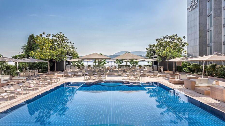 Al menos el que ofrece la habitación más cara: se trata de la Suite Imperial del Hotel President Wilson en Ginebra, Suiza, en la que podríamos pasar la noche por tan solo 83.000 dólares, unos 71.670 euros. Los afortunados huéspedes tienen todo lo que podrían necesitar ya que esta suite ocupa la totalidad de la octava planta del hotel y consta de 12 habitaciones, 12 baños de mármol llenos de productos Hermès, una terraza circundante con vistas al lago Leman y al Mont-Blanc, ascensor propio, una sala de estudio, un vestidor, un comedor con capacidad para 26 personas, un salón de 230 m2 con una mesa de billar 1930 Brunswick y un piano de cola Steinway, una biblioteca con una colección de libros antiguos, ventanas a prueba de balas y servicios de evacuación en helicóptero. Además, la estancia incluye un chef, un mayordomo, un chofer y un asistente personal.