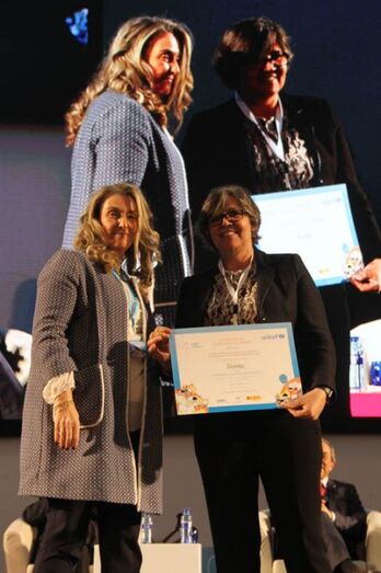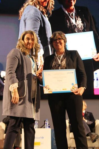 A alcaldesa, Eva García de la Torre, recibiu este martes, día 27 de novembro o nomeamento do Porriño coma ‘Cidade Amiga da Infancia’, outorgado por UNICEF, nun acto celebrado no Pazo de Exposicións e Congresos de Oviedo.