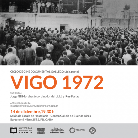 A longametraxe documental “Vigo 1972” que colleitou o pasado ano un inusual éxito de taquilla nas salas de cine galegas chega este venres 14 de decembro á capital arxentina. A proxección terá lugar no marco do II Ciclo de Cine Documental Galego organizado polo Centro Galicia de Buenos Aires, que anualmente repasa o máis destacado da produción cinematográfica galega no eido documental.