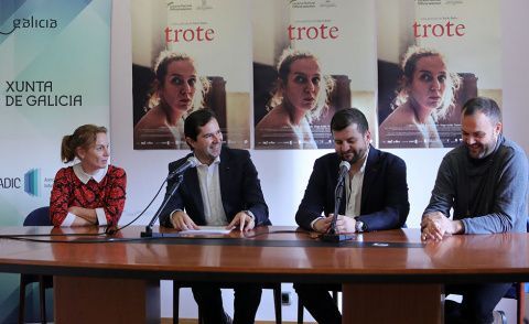 Jacobo Sutil acompañou a Xacio Baño, a actriz María Vázquez e o produtor Sergio Frade na presentación aos medios da estrea comercial de Trote, que poderá verse desde mañá na Coruña (Cantones Cines), Ferrol (Cine Dúplex), Lugo (Códex Cine), Santiago (Númax e Cines Compostela), Vigo (Multicines Norte), O Barco de Valdeorras (Casa da Cultura), Caldas de Reis (Avenida), A Estrada (Cine Central), Marín (Cine Seixo), Verín (Casa da Cultura) e Viveiro (Cines Viveiro), así como en varias salas de Madrid, Barcelona, Málaga ou o País Vasco.