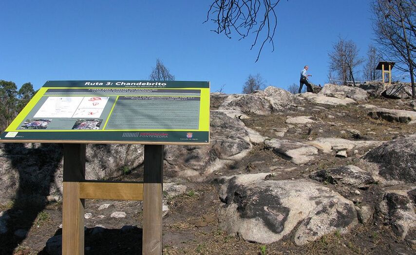 O roteiro de Chandebrito, de 5 km, tamén ten nos petroglifos o seu maior atractivo, pero goza de características propias que o individualizan: os motivos dos gravados son máis variados (hai incluso representacións de animais, como o cervo milenario de 'O Sueido' que se atopa nun cortello privado) e se engade o propio valor da aldea tradicional do barrio da Igrexa ou do Castro de Chandebrito coas súas impresionantes vistas.