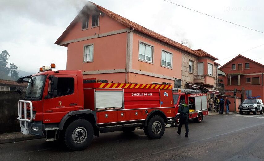 El fuego afectaba a la vivienda situada en la parte superior del establecimiento comercial conocido como "Bar Moreno". Al lugar, además de los equipos de Bomberos, se personaba una dotación de la Policía Local de Mos y otra de la Guardia Civil para regular el tráfico en la zona.