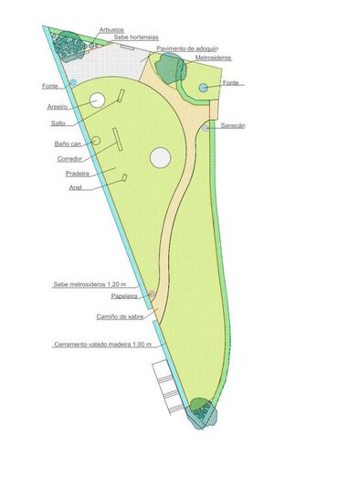 Este espacio estará delimitado con un cierre perimetral de madera tratado; un seto bajo de hortensias y metrosideros aislando la zona de paseo de los perros, que permita al usuario disfrutar tanto de las vistas como de la tranquilidad de la zona.