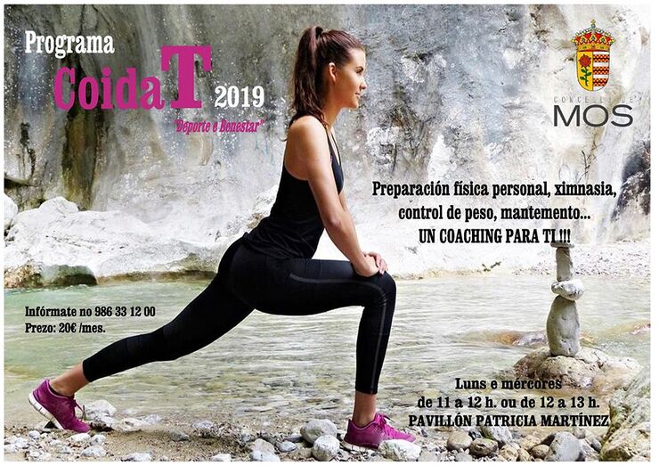 Hoxe ás 21.00 horas celebrarase a presentacioón do Programa “COIDA.T 2019” no Pazo de Mos. Trátase dun novo programa municipal que se enmarca baixo o lema “Un Coaching para ti!” e que inclúe actividades de preparación física, ximnasia, control de peso, mantemento, etc.
