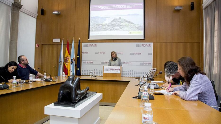 “Durante estes tres anos e medios rematamos todos os traballos que nos correspondían, actuamos en todos os xacementos para escavar, restaurar, consolidar e realizar levantamentos topográficos deixando pendentes as limpezas para cando o Ministerio de Fomento inicie a súa parte do protocolo que é a musealización”, detallou a presidenta.  En total, as tarefas desenvolvidas supuxeron un investimento de 3,5 millóns de euros para a recuperación do patrimonio arqueolóxico. A presidenta sinalou que “foi necesario esperar ao cambio de goberno de España para asinar a addenda do protocolo que levábamos dende o inicio da lexislatura intentando pechar co goberno de Rajoy, xa que Fomento non cumpría coa parte do protocolo, non entraba a consolidar as estruturas que xa nós tiñamos restauradas e, para evitar poñer en perigo todo o traballo desenvolvido, tivemos que executalo nós. Soamente un mes despois do cambio de goberno no Estado conseguimos asinar esta addenda a través da cal Fomento vai asumir outras accións que lle correspondían á Deputación de Pontevedra”.