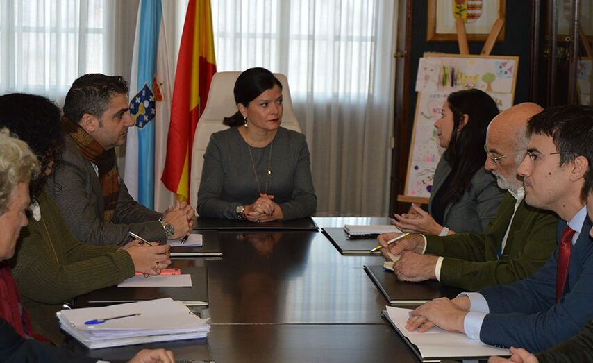 A alcaldesa de Mos, Nidia Arévalo, o concelleiro de Promoción Económica, Emprego e Novas Tecnoloxías, Óscar Soto, a edil mosense de Urbanismo e o arquitecto municipal reuníronse esta mañá no salón de sesións do Concello con representantes do Círculo de Empresarios de Galicia entre os que se atopaban a súa presidenta, Patricia García González o director, Víctor Jáuregui, o coordinador do Foro de Loxística e Transporte do Círculo e presidente da empresa Kaleido Logistics, Juan Martínez; Rita Cal da empresa Logidigal e David Sobral Pidre, secretario xeral da Federación Galega de Parques Empresariais.