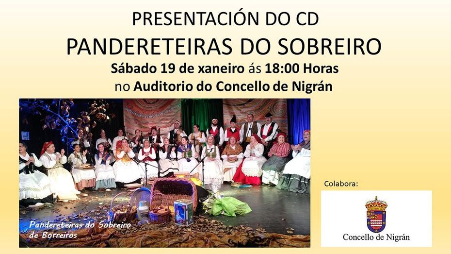 O Concello de Nigrán ofrece este sábado ás 18:00 horas no Auditorio Municipal a actuación do grupo 'Pandereteiras do Sobreiro', que presentará o seu último traballo discográfico.
