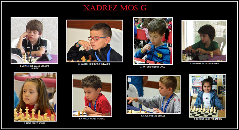 O Xadrez Mos E imponse de xeito contundente fronte a un Xadrez Mos G moi prometedor, formado por xogadores cunha idade media de 6-7 anos, que sen dúbida, dará moitas alegrías no futuro.