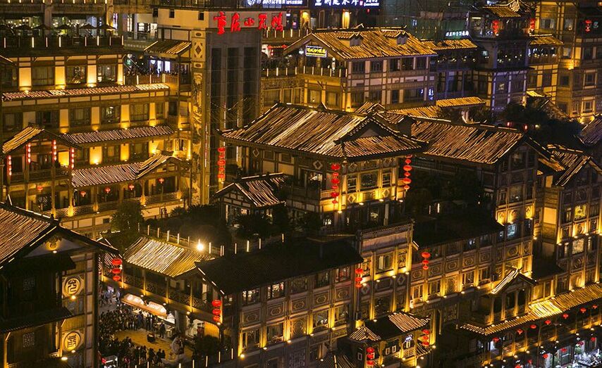 Un carácter similar en cuanto a su arquitectura, tiene Hongyadong, que sirvió como fortaleza militar en el pasado y hoy es un recargado conjunto de casas sobre pilotes de 11 pisos que se apoya en un acantilado sobre el Yangtze. Su interior es un conglomerado de tiendas y restaurantes y punto de cita obligado de cualquier turista. Cuando cae la noche, las lámparas y linternas de tonos cálidos iluminan el conjunto. Con su reflejo en el agua, este brillante complejo es como un pabellón de ensueño que flota entre los imponentes rascacielos que lo rodean.