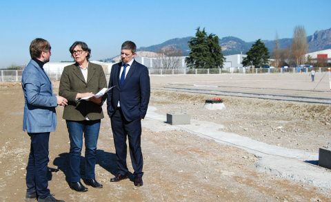 A alcaldesa do Porriño, Eva García de la Torre, estivo este xoves no Campo Municipal de Lourambal para comprobar que xa se está a rematar a colocación do depósito de auga sanitaria, de 1.500 litros de capacidade, demandado hai tempo polos usuarios do campo.