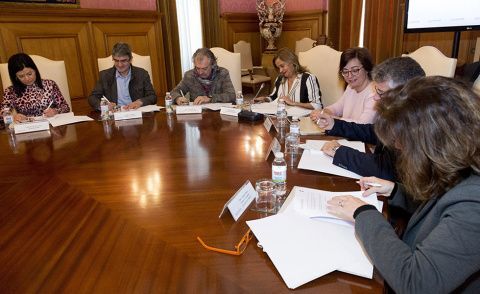 Carmela Silva asinou o convenio cos alcaldes e alcaldesas do Rosal, Oia, Cambados, A Guarda, Caldas de Reis, Mos e Silleda que acollerán 8 pezas da mostra da Escola de Cantería