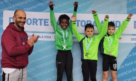 A choiva, o frío e o vento non foron óbice para que os pequenos grandes atletas deran o mellor de sí. Así, ás 10:45 horas daba comezo a cita deportiva coa proba de cadetes, que debían percorrer 1500 metros na categoría masculina e 1000 en feminina. Lograron as primeiras posicións Pedro Vázquez Bueno, do Real Club Celta de Atletismo (1º Posto), Sergio Souta Peña da SA Val Miñor (2º Posto) e Juan Núñez Asenjo do Real Club Celta de Atletismo (3º Posto). En feminino, Laura Carracedo Flores, do Club Atletismo A Estrada (1º Posto), Marcela Morrazo Rodríguez, da SA Trega (2º Posto) e Carmen Agulló Guió do Club San Miguel de Marín (3º Posto).