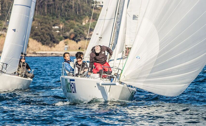 La Liga de Invierno J80 se disputa en la bahía de Baiona. /© Rosana CalvoEl Cansino convirtió este sábado en el primer líder de la Liga de Invierno de la clase J80, que organiza el Monte Real Club de Yates y se disputa hasta el próximo mes de abril en la bahía de Baiona.