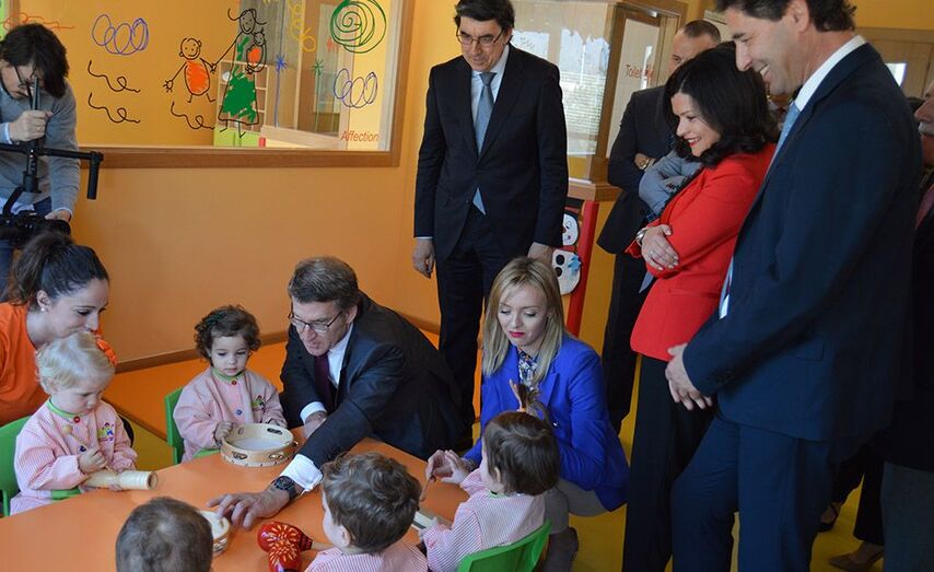 O presidente do Goberno galego, Alberto Núñez Feijóo, referiuse hoxe á nova gardería no parque empresarial de Mos como exemplo do traballo “man a man” entre empresas, concellos e Administración autonómica, para xuntos, facilitar a conciliación, seguir creando recursos de atención á infancia e dar apoio económico ás familias que queren ter fillos; “para poñer, en definitiva, todas as facilidades económicas, fiscais e urbanísticas á disposición destes obxectivos”, dixo.