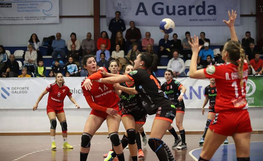 Antes del pitido inicial hubo dos momentos a destacar. El primero de ellos fue el homenaje a los hermanos guardeses Damián y Óscar Alonso, orgullosos campeones del mundo de remoergómetro y a quienes el presidente del club, José Manuel Silva, entregó una placa. A continuación, A Sangriña enmudeció durante el minuto de silencio en recuerdo de Iraide Martín Buitrago, jugadora cadete del Club Bm. Muskiz E., fallecida en las últimas horas.