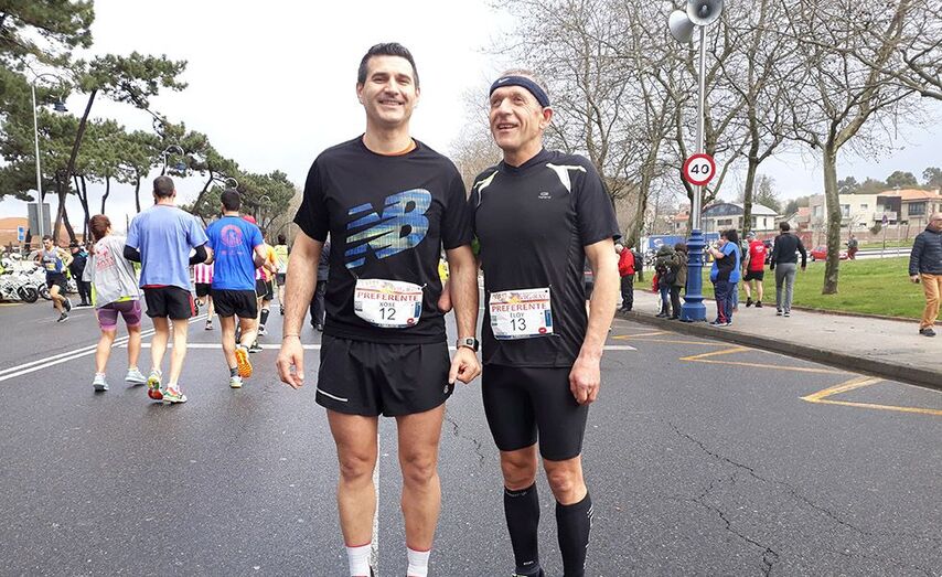 Eloy Iglesias dcha y Ricardo Romay izq.El domingo 7 de abril va a tener lugar una acción solidaria en la XX edición del Medio Maratón Gran Bahía Vig-Bay EDP gracias a la plataforma www.compartetuenergia.com una persona ciega va a poder participar en la prueba con sus corredores-guía.
