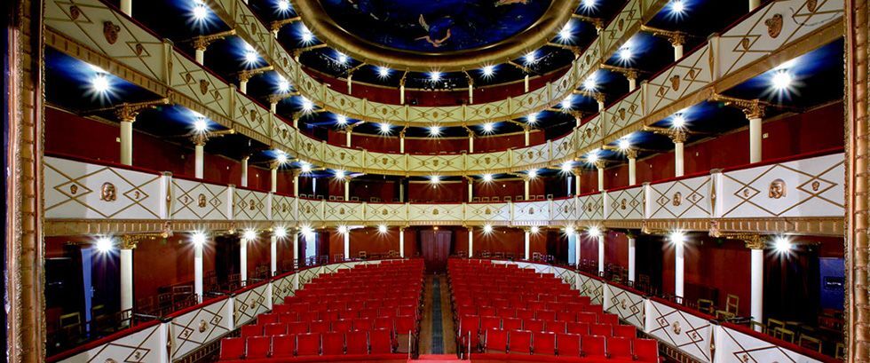 Nos adentramos en el casco urbano hasta llegar a la Plaza de Santa María y desde allí a la calle La Rúa. Nada más acceder a esta vía, a mano derecha y un poco escondido se encuentra el Teatro Reina Sofía. Levantado en 1928, sustituyó a otro isabelino conocido como Teatro del Jardinillo y fue construido sobre algunas dependencias del desamortizado Convento de Santo Domingo, del que se conservan restos y elementos decorativos. En 1984 pasa a manos del Ayuntamiento de Benavente y en 1991 se acomete su rehabilitación con el objetivo de recuperar para la ciudad este singular edificio. La elegante fachada sigue los criterios compositivos y constructivos de la época con una decoración a base de hornacinas y guirnaldas. El interior, que sigue los parámetros de los teatros románticos, presenta grandes vestíbulos y en torno a los patios de butacas se disponen tres plantas de palcos decorados con listones dorados y reproducciones en escayola de máscaras griegas.