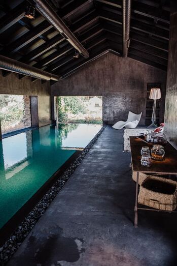 Tras años de trabajo, la ruina se ha convertido en un lugar especial, un hotel cortijo andaluz tranquilo y simple, donde todo, desde los suelos de madera y losas hasta muebles hechos a mano y vistas espectaculares está naturalmente pensado y diseñado. También lujoso, aunque de manera discreta, fresca y contemporánea, con arte, libros, música y todas las comodidades de la tecnología, como la calefacción en suelo radiante, la iluminación de diseño y el spa con piscina infinita. Hay solo nueve habitaciones, siete de ellas suites y dos yurtas como las de los nómadas mongoles pero de avanzado diseño. No hay que esperar grandes lujos en las habitaciones, la mayoría muy espaciosas y con muebles antiguos o viejos. Las camas tienen mosquiteros y son muy cómodas, los lavabos son de piedra, los grifos y cañerías imitan a los antiguos, la iluminación es escasa y, desde luego, no hay amenities porque van envueltas en plásticos y eso aquí está prohibido; tampoco las zapatillas lo llevan lo que puede dar la sensación de que están usadas y, desde luego, tampoco hay televisión. Todo es muy eco y natural, excepto el precio: entre 340 y 440 euros por persona y noche, con un mínimo de dos, un presupuesto de cerca ce 2.000 euros por pareja para un fin de semana. Eso sí, las comidas y bebidas también están incluidas.