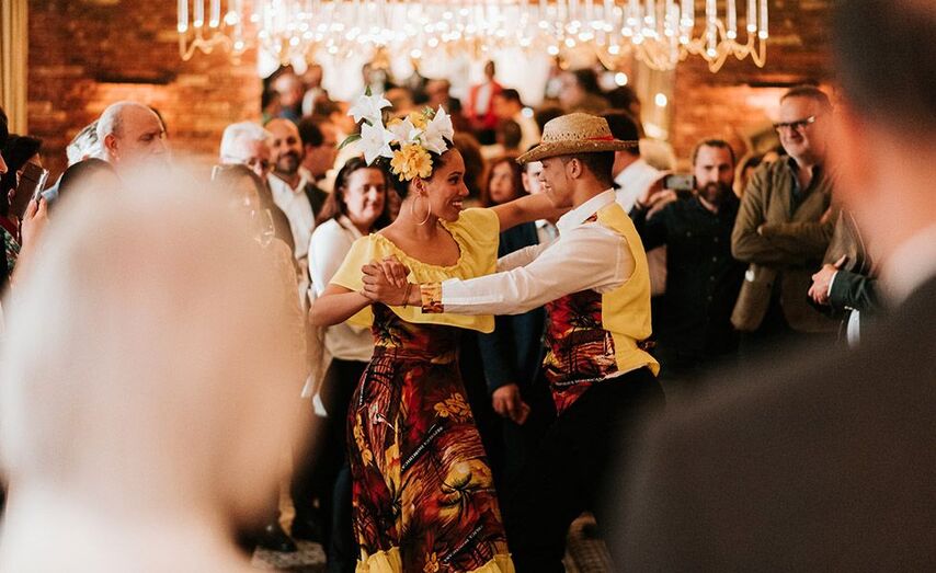 Por otra parte, el evento ha sido amenizado por la actuación del Ballet Juvenil Dominicano en Europa, integrado por estudiantes de la Universidad Rey Juan Carlos de Madrid, que ha ofrecido un colorido espectáculo, con un vestuario exclusivo para la ocasión. Dicho atrezzo, de vivos colores, ha supuesto en este inicio de primavera un guiño al sol tropical, inequívoca referencia a República Dominicana. Los bailarines, que han completado su atuendo con un tocado de frutas típicas del país, han puesto la nota lúdica a una velada que ha combinado a la perfección música y gastronomía.