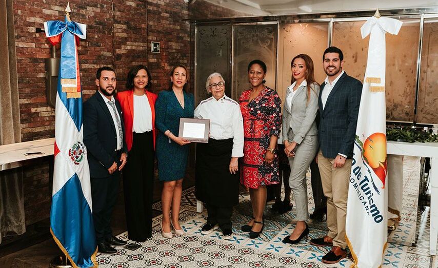 El almuerzo gastronómico ha sido propicio para que la Oficina de Turismo para España y Portugal le hiciera entrega a Esperanza Lithgow de una placa de reconocimiento por su trayectoria y por dar a conocer dentro y fuera de su país la rica cocina dominicana.