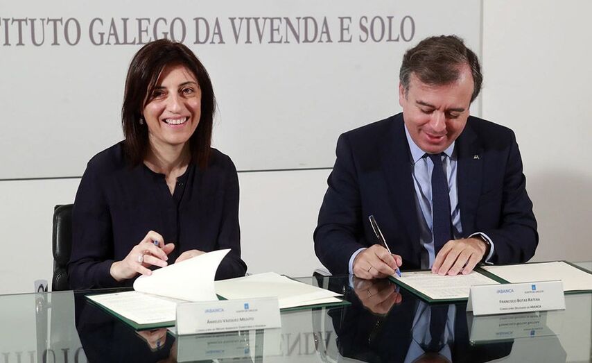 A Xunta de Galicia e Abanca veñen de renovar o convenio de colaboración para ceder vivendas de alugueiro social a máis de oitenta familias. A conselleira de Medio Ambiente, Territorio e Vivenda, Ángeles Vázquez, e o conselleiro delegado de Abanca, Francisco Botas Ratera, renovaron o convenio de colaboración asinado en 2015, para destinar vivendas de alugueiro social cedidas pola entidade ata o ano 2022.