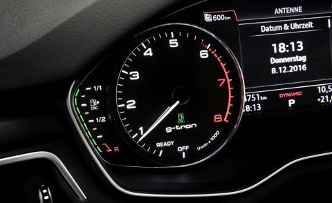 El depósito de gasolina, que ahora tiene una capacidad de nueve litros en el A3 Sportback y de 7 litros en los A4 Avant y A5 Sportback g-tron, proporciona la reserva necesaria para garantizar la movilidad. La reducción del tamaño del depósito de gasolina hace que los nuevos modelos g-tron sean vehículos casi monovalentes. Aprovechando las dimensiones y ventajas específicas de cada una de las dos tecnologías, la combinación inteligente de los depósitos de fibras compuestas con el depósito adicional de acero consigue un óptimo aprovechamiento del espacio existente para la instalación.