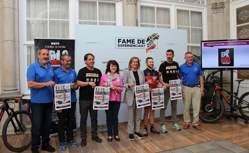 A presidenta da Deputación de Pontevedra, Carmela Silva, xunto á deputada de Deportes, Chelo Besada, asistiu á presentación da terceira edición da Epic Race, a proba ciclista BTT en formato non stop que se celebrará do 31 de maio ao 2 de xuño. Este ano terá un percorrido de 550 quilómetros cun desnivel positivo acumulado de 13.000 metros que deberá completarse nun máximo de 51 horas. No acto, a presidenta tamén estivo acompañada polo director técnico da proba, José Victor Cimadevila, polo deseñador do percorrido, Manuel Torres, e por responsables de comunidades de montes da provincia.