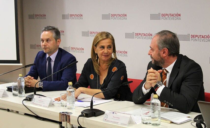 A presidenta da Deputación de Pontevedra, Carmela Silva, acompañada do secretario de ASIME, Enrique Mallón, e do xerente de ACLUNAGA, Óscar Gomez, presentaron esta mañá o “I Foro Internacional de Tecnoloxías 4.0 aplicables ao sector naval”, enmarcado no proxecto IN 4.0 liderado pola Deputación de Pontevedra. O foro terá lugar o vindeiro martes de mañá no Teatro Afundación de Vigo e nel concentraranse expertas e expertos internacionais en visión artificial, realidade aumentada, monitorización, robotización e plataformas colaborativas.