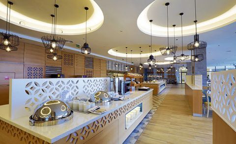 La oferta gastronómica es también uno de los grandes atractivos del hotel. Dispone de un restaurante principal, ‘Astoria’ en elque se puede disfrutar de variados buffets de comida internacional y cocina en vivo; un restaurante de snacks, ‘Stagioni’, que por la noche se convierte en un restaurante de especialidades italianas; y un restaurante, ‘Tokyo’, en el que se servirán los mejores platos asiáticos. Además, el hotel dispone de un Lobby Bar, un bar de piscina con una amplia terraza y un Lounge Bar, llamado ‘Fiesta’, que permanece abierto desde medianoche y ofrece entretenimiento nocturno en forma de shows y música en directo.