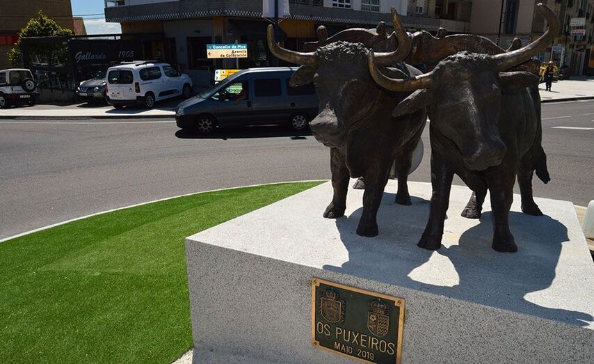 O Concello de Mos ven de instalar unha escultura de 2 bois na rotonda do Alto de Puxeiros, na parroquia de Tameiga, obra do escultor Lucas Míguez.