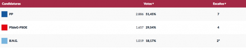 El PP mantiene su mayoría absoluta, se repiten los resultados de 2015 para PSdG-PSOE y BNG