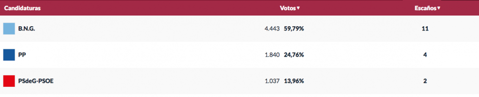 El BNG incrementa su mayoría absoluta pasando de 10 a 11 ediles