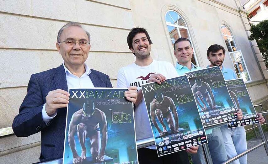 O XX trofeo Amizade de natación congregará a 276 nadadores e nadadoras de 13 clubes de toda Galicia, así o adiantou hoxe o Club Natación Ponteareas no decorrer da presentación á que asistiron o alcalde en funcións, Xosé Represas, e o concelleiro en funcións de Deportes, Benito Márquez. Este mesmo sábado tamén se desputará o XI Trofeo concello de Ponteareas que premiará aos mellores nadadores por puntos segundo os criterios da Federación Internacional de Natación (FINA).