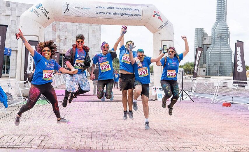 Patrocinada por Viaqua e coa colaboración da Fundación USC Deportiva, Federación Galega de Atletismo e Coca-Cola European Partners, a Holi Gaiás trouxo á Cidade da Cultura o seu espírito festivo na que o importante non é gañar, senón celebrar as últimas semanas dunha estación como a primavera cunha explosión de música e de cores, inspirada no festival Holi da India.