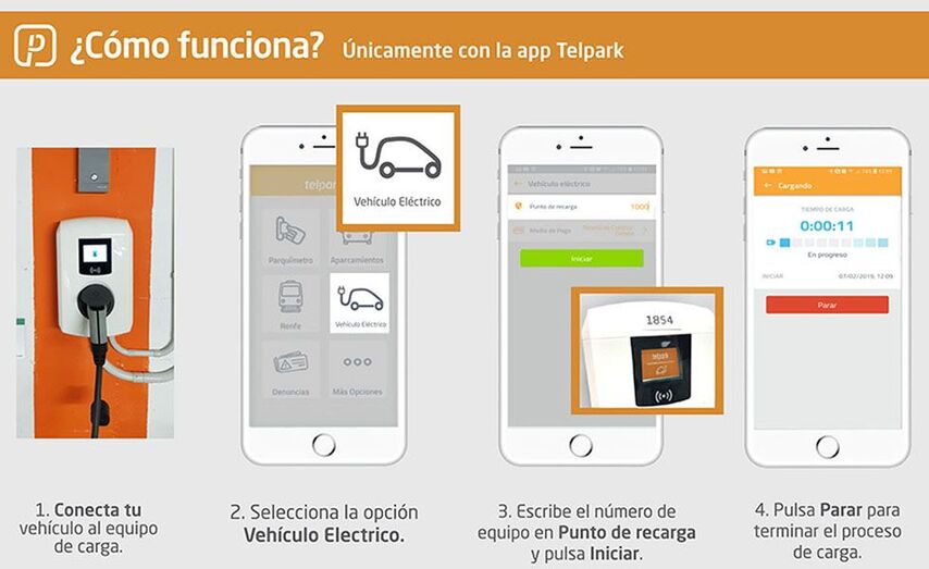 ¿Cómo funciona Telpark para recargar el vehículo eléctrico?