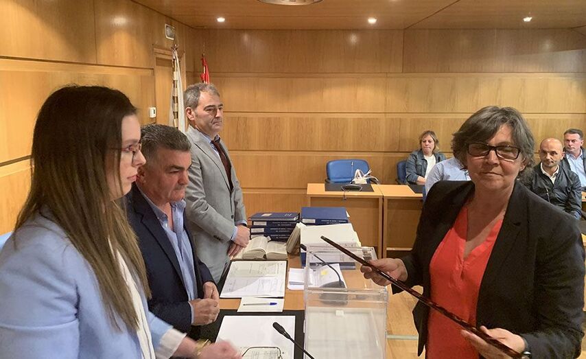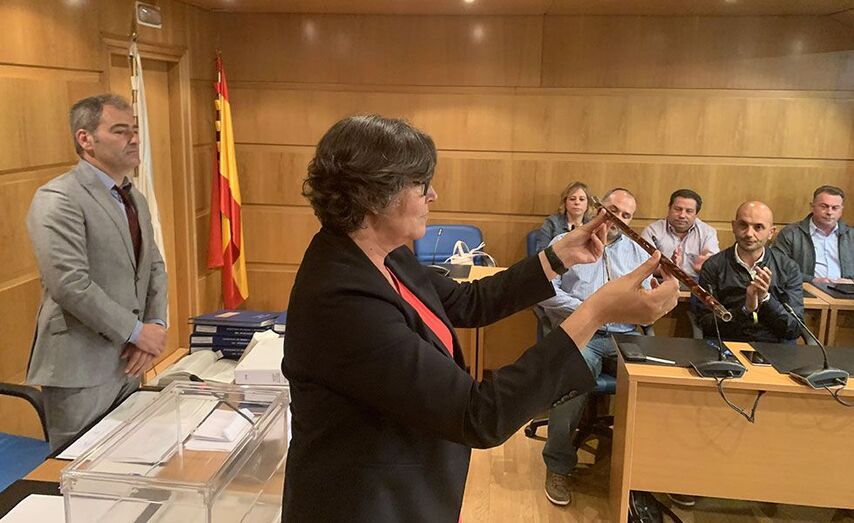 Deuse a circunstancia de que o derradeiro concelleiro chamado a votar foi Manuel Carrera, da UDDL, o voto decisivo para desfacer o empate a favor de Eva García Eva García recibiu o bastón de mando da mesa de idade que presidiu a sesión constitutiva formada polo o concelleiro de maior idade, Ramón Porto e a concelleira máis nova, Antía Carrera (ambos do PP) que actuaron asesorados polo secretario do Concello. Previa á votación tomaron posesión os dezasete membros da nova corporación mediante a fórmula de xuramento ou promesa á Constitución, segundo elixiron. E finalmente procedeuse á votación para elixir alcalde ou alcaldesa que deparou o resultado antedito.