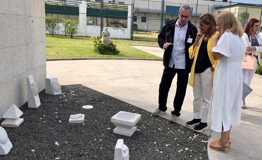 Acompañada polas deputadas Olga García e Normé Outeda, pola directora do Centro Penitenciario, Teresa Delgado, do subdirector e do persoal de formación, Silva subliñou o “positivo balance desta experiencia” e visitou a exposición dos traballos feitos polo alumnado do curso ao longo dos últimos cinco meses. A presidenta da Deputación se dirixiu aos 11 internos e internas participantes, que recibiron os seus diplomas, para volver resaltar as oportunidades que presenta este oficio. “Creo que a cantería é unha profesión que permite desenvolver a creatividade –destacou-, que nos permite estar en contacto con algo tan noso como é a pedra, o granito. Desde que nacemos, nós miramos granito e mar. De feito, en Galicia, pero sobre todo na provincia de Pontevedra particularmente, somos mar e pedra. E polo tanto, temos unha paixón e unha capacidade especial para traballala. E algo que é tan duro, porque parece tan difícil de traballar, ao final somos capaces de facer unha obra de arte con el. Cando a directora me propuxo facer este curso aquí pareceume que era unha idea moi boa, porque a creatividade ás persoas nos axuda”.