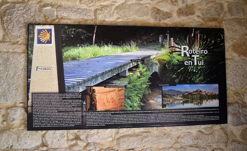 A través de distintos paneis informativos, en varios idiomas, achéganse ao visitante diversos aspectos das peregrinacións xacobeas que dende os seus inicios ligaron á cidade de Tui a este Camiño de Santiago, destacando amais o feito de ser a porta de entrada do Camiño en Galicia.