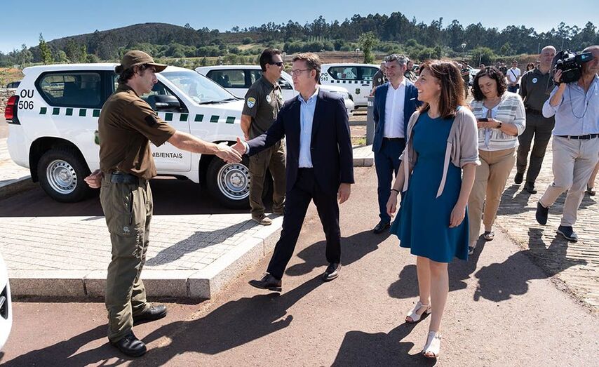 Durante o acto de entrega de 81 vehículos, nos que a Xunta investiu 2,4 millóns de euros, Feijóo lembrou o compromiso da Administración autonómica para que os axentes e vixilantes desempeñen o seu traballo nas mellores condicións, reflectido no pacto de melloras laborais alcanzado en outubro do pasado ano, tanto en retribucións como en condicións; no plan de renovación do parque móbil, fixado para os próximos cinco anos; e na aprobación este mes dun incremento de 4 novas prazas de axente ambiental destinadas ao Parque Nacional das Illas Atlánticas, que pasarán de 161 a 165 –a maiores das 101 existentes para vixilantes de recursos naturais-.