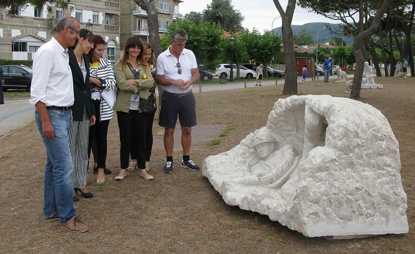 O alcalde de Nigrán, Juan González, e as deputadas Ana Laura Iglesias e Noemí Outeda, inauguraron esta semana no paseo de Praia América a nova exposición da Escola de Cantería da Deputación de Pontevedra “D’Pedra”. Trátase dunha colección de obras elaboradas polo alumnado do centro e composta por 16 pezas de granito de diversa temática, que na súa meirande parte representan oficios, animais, sentimentos ou escenas da vida cotiá. Estará exposta ao público ata o vindeiro 9 de setembro. "O ano pasado tivemos a mostra anterior desta Escola e foi un éxito rotundo, a ubicación ao pé da praia é inmellorable e estamos encantados de poder repetir con esta nova, a calidade das pezas é asombrosa", sinalou o alcalde, Juan González, durante a presentación.